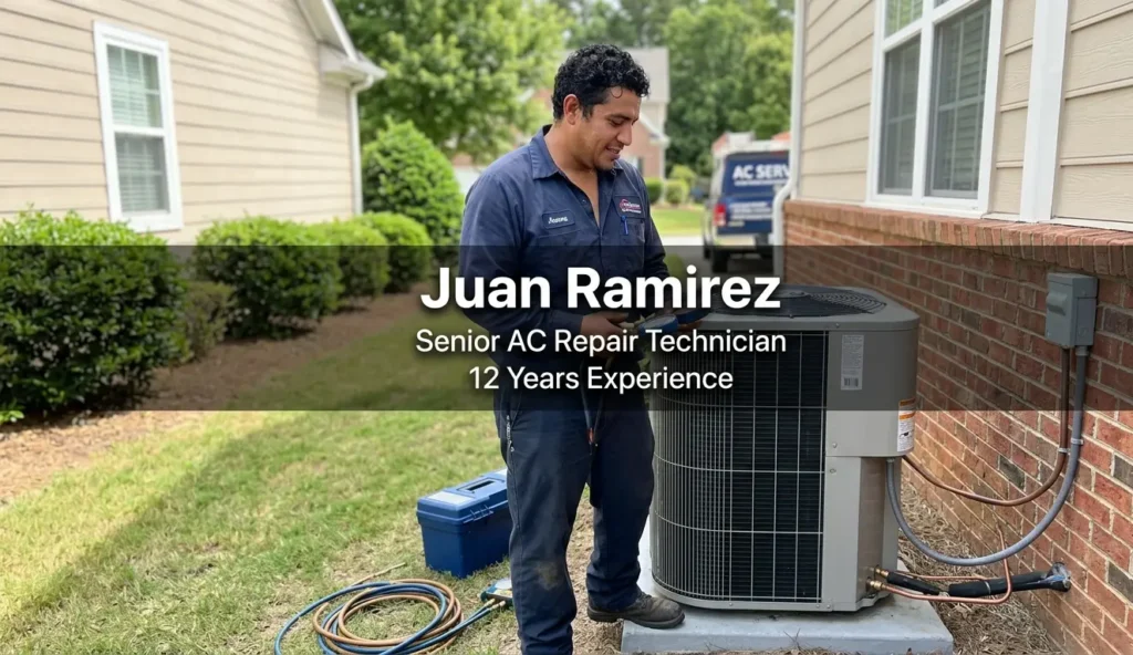 Juan Ramirez: Senior AC Repair Technician – 12 years experience Grew up in North Brownsville and has been repairing AC units here since he was 22. He’s the go-to guy for tough repairs.